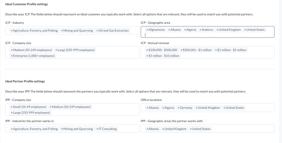 The platform uses a sophisticated matching algorithm that activates when at least one corresponding value matches between partners. Both ICP and IPP components consist of 4 values, each carrying equal weight in the calculation.Match categories are determined by fit percentage: