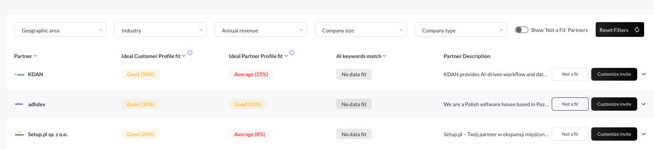 If you'd like to hide the partner from your PartnerConnect list, use "Not a fit"