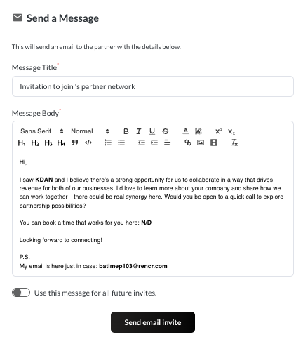 Once invited, the potential partner will be added as "Prospect" to your Partner List