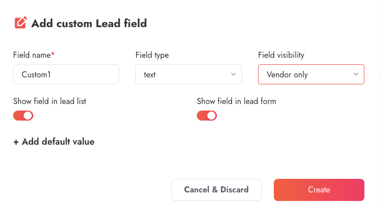 - Show field in lead list: Toggle ON (enabled, turns red)