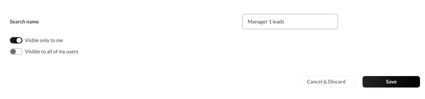 - Be descriptive: Use names that clearly indicate what the search shows (e.g., "Q1 2026 New Leads" not "Search 1")