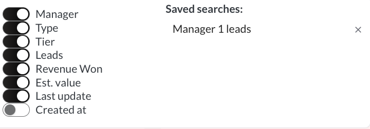 Once saved, your search appears in the Saved searches: section within the Table Configuration panel. You'll see: